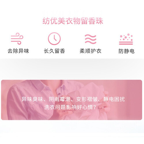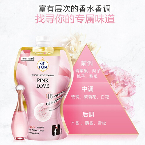 由调香师精心调配的香氛因子,前中后调层次丰富,使香味持久而迷人。还含有柔顺因子,多次洗涤依然能保持衣物柔软质感。