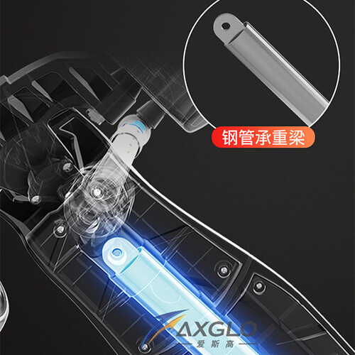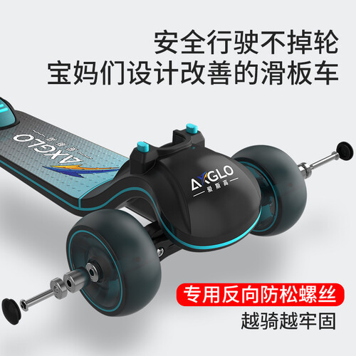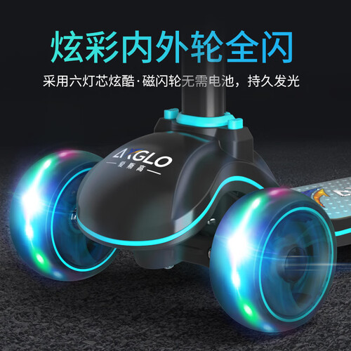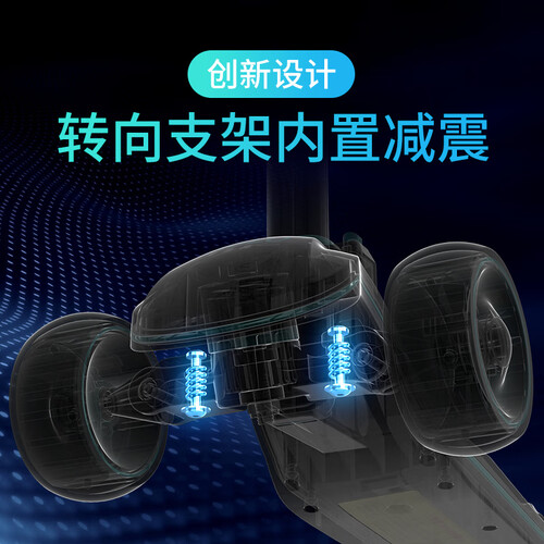 内置减震转向支架,自主分配侧向支撑,抓地更牢防止侧翻。加宽的巨轮采用六灯芯,磁闪轮无需电池,持久发光内外全闪。