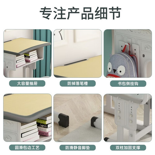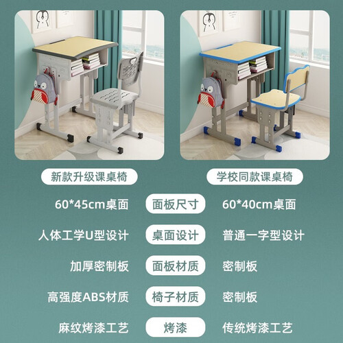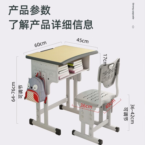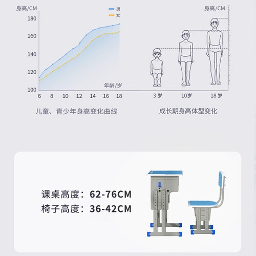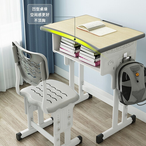 加大的桌板设计,桌面弧形的设计,使用很是舒适。桌子可以自由升降,适合不同身高的学生,使用更舒适。