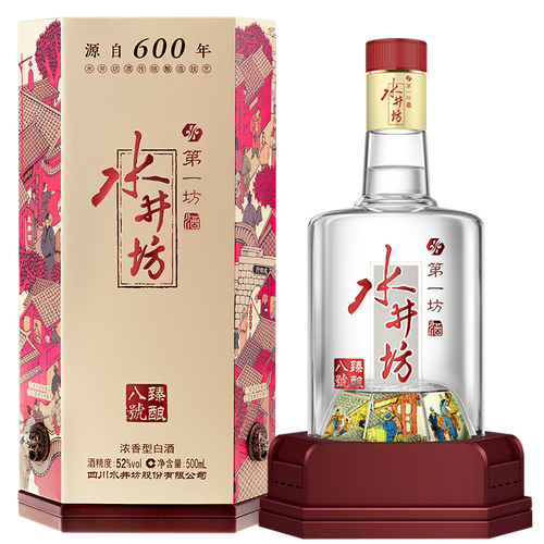 水井街酒坊八号古窖珍稀窖泥接种扩大培养酿造,口感甘甜净爽,滋味浓厚。瓶底带有精美内烧画,还原水井街繁荣景象,观赏价值高。