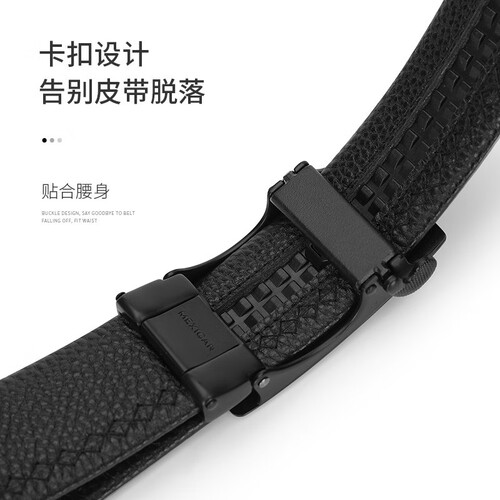 精致粒面的牛皮腰带,自带肌理质感,彰显简约时尚格调。光泽亮丽的锌合金自动扣,触感顺滑更坚硬耐磨,贴腰更加有型。