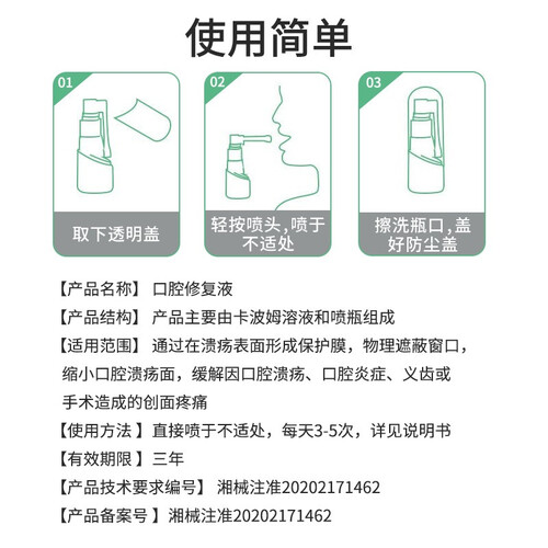 专注草本护理,萃取中草药成分0添加0防腐剂,冷敷凝露对口腔溃疡,粘膜创伤和牙龈肿胀均有舒缓功效;长管设计一喷即可。