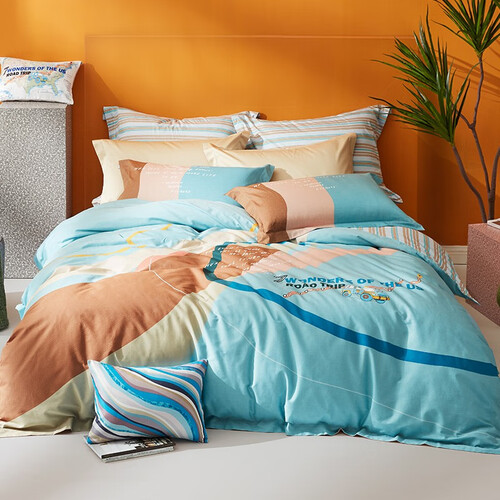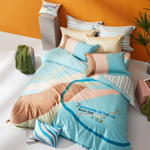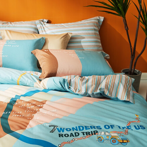现代风格设计,采用流行的旅行主题大胆新奇,巧用时尚元素足不出户享受旅程感。斜纹织物织法复杂,密度比平纹更高耐磨耐用。