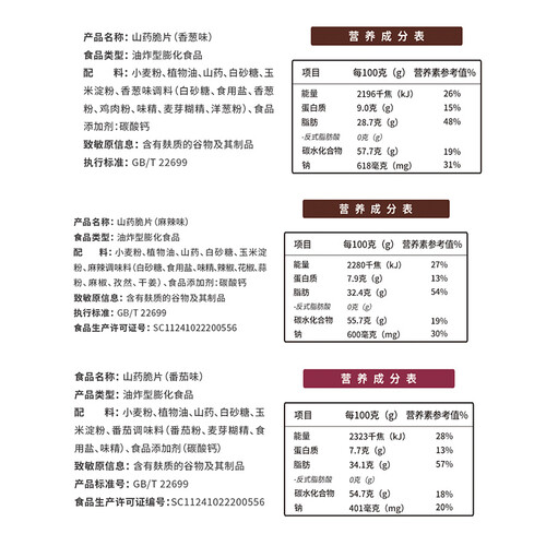 选用新鲜山药、小麦粉和植物油为原材料,采用十秒离心脱油技术制作。优选高品质的原材料制作,带有独特的风味,爽口又不油腻。