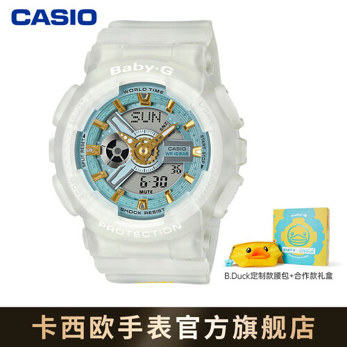 B.Duck合作款以备课、还行、泳圈为元素设计于表带之上,半透明表带搭配黄蓝两色,元气可爱。寓意和小黄鸭一起健康阳光。