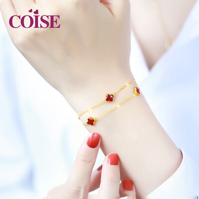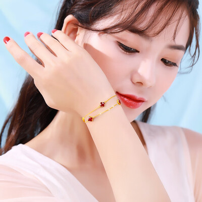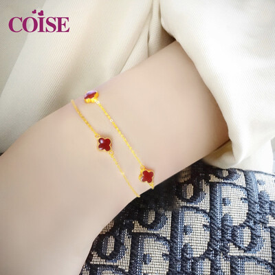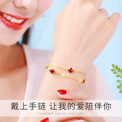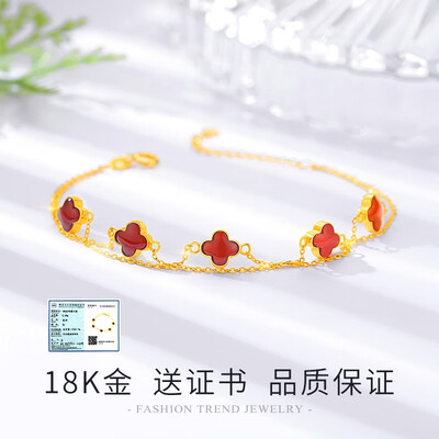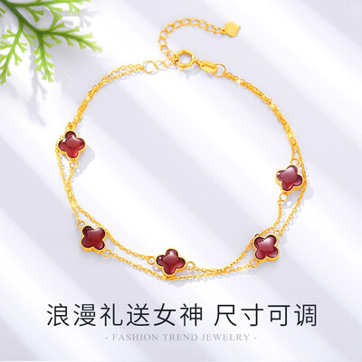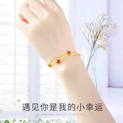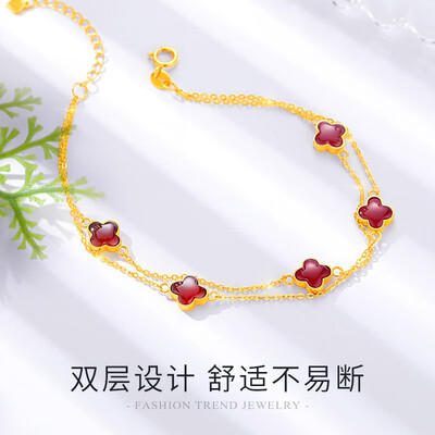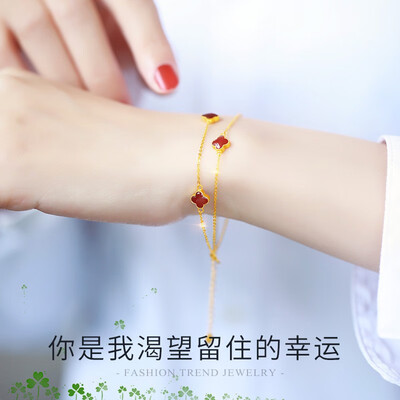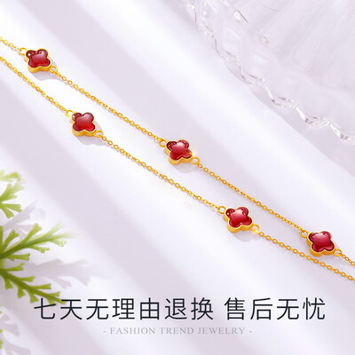K金色泽亮丽,双层链条,搭配红玛瑙点缀,更显精致感;幸福的四叶草图案,带给你惊喜和幸运,让爱时刻陪伴你。