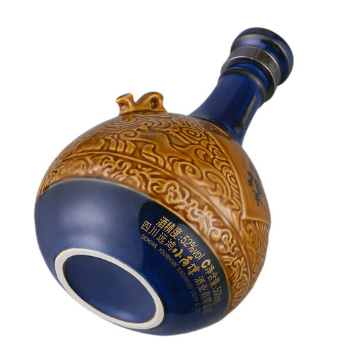 白酒选用陶坛贮藏,内含大量的金属离子,使酒体更加清澈通畅。酒瓶背部采用凹凸花纹装饰,质感出色有年代感。
