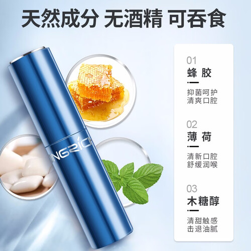 添加CPC抑菌成分,有效减少口腔内细菌残留,抑制细菌滋生,清新口气。富含天然蜂胶,口感清香甜美,不添加酒精,放心使用。