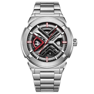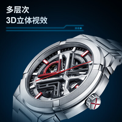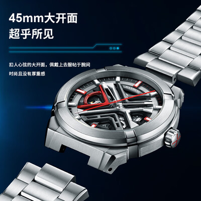 50米防水性能,日常洗手无需反复摘戴。经典的表冠可及时调整时间,结合多边形铆钉夜光,黑夜也能清晰读时。