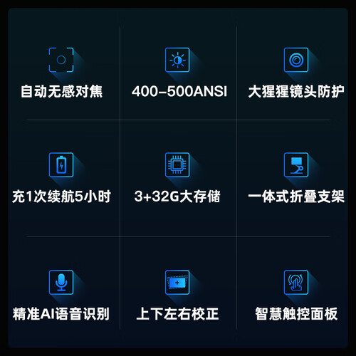续航强,机身迷你的投影仪,性价比较高。自动无感对焦+自动校正,可随意摆放,瞬间还原清晰画质;AI语音识别功能,智能实用。