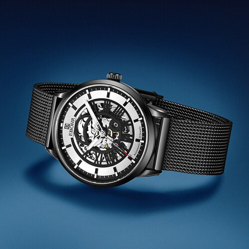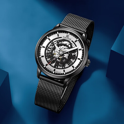 将镂空式表盘和大气的黑色调巧妙融合,碰撞出别样的炫酷潮流感。结合双按扣的加持,摘戴手表更为便捷省时。