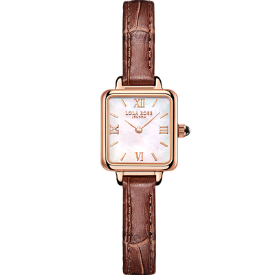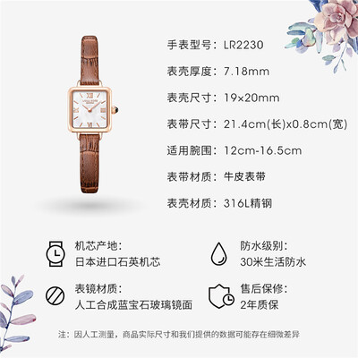 采用母贝材质制作的表盘,散发宛如深海珍珠的光泽,细腻柔润。采用迷你小方盘设计,佩戴起来小巧灵动。
