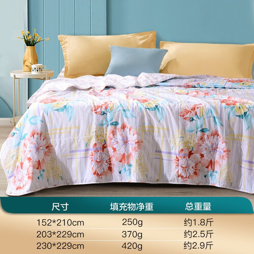 面料加入阳离子纤维混纺,犹如贴身内衣般的吸湿透气性能,夏天也不会觉得闷热粘腻;精细绗缝工艺固定内芯和被面,不起团不脱线。