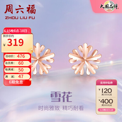 采用了小巧精致的雪花造型设计,唯美浪漫,美观优雅,适合多种场合的佩戴需求。K金材质,光泽十足,触感舒适。
