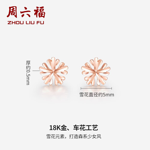 周六福 小雪花K金耳饰
