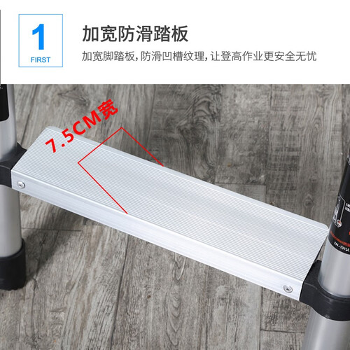 带有可伸缩的扣具,能够更好的绑定梯子,使其不易弹开;防滑凹槽纹理,会增加接触阻力,不滑脱令您安心踩踏。