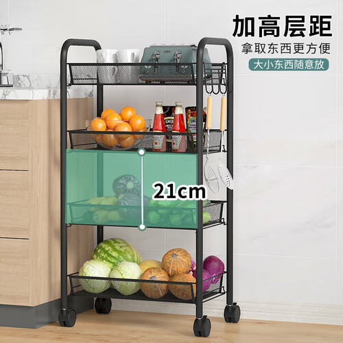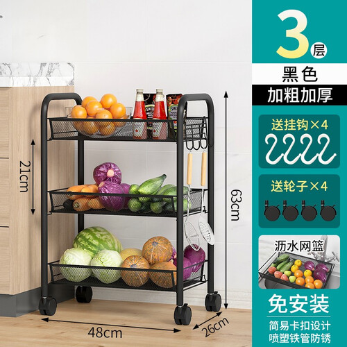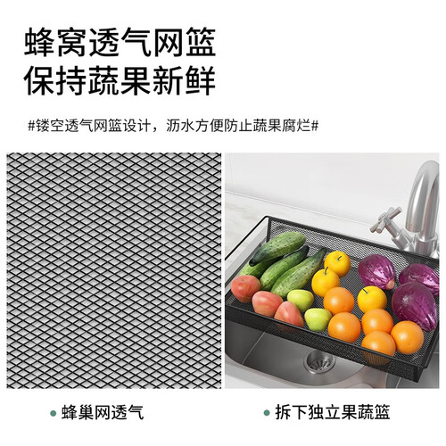 做了蜂窝透气网篮设计,能够方便沥水,防止果蔬腐烂。底部带有万向轮设计,静音顺滑,不伤地板,即使沉重也能移动。
