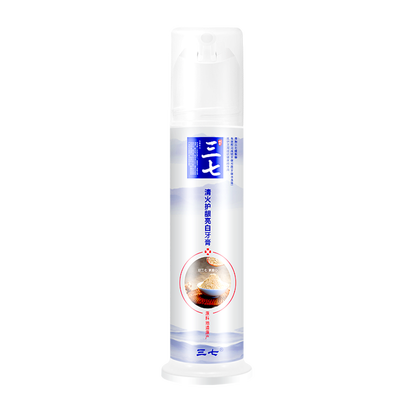 牙膏中含有三七提取物,能帮助清除口腔火气,防止牙龈上火红肿。膏体减少后底盘会自动上推,牙膏一按压就有,使用好方便。