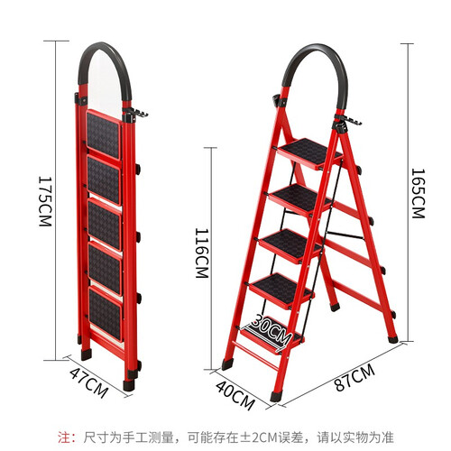 一开一合快速折叠,使用简单省力收纳不占空间。扶手采用柔软海绵填充,舒适耐磨有效防止磕碰,同时还能延长梯子寿命。