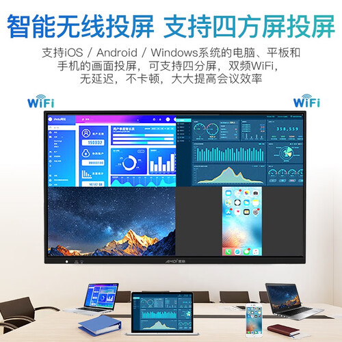 支持WIFI一键投屏,支持无线传输,沟通畅行无碍。配备智能书写笔功能,使用起来更加便捷,轻松掌握科技生活。