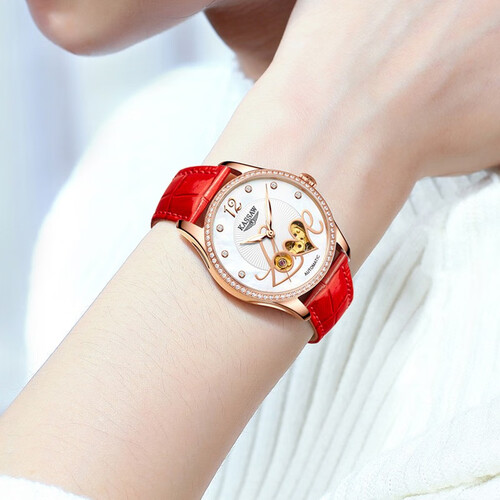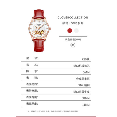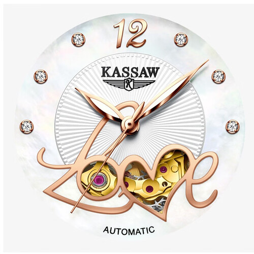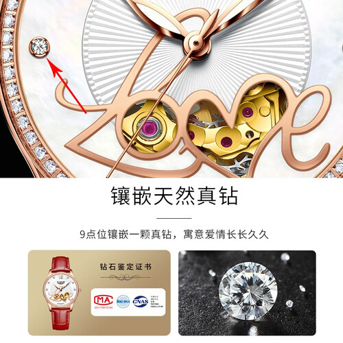 此款腕表在9点位镶嵌天然钻石,寓意长长久久,适合赠送伴侣表达爱意;表盘搭配镂空LOVE,别致新颖,丰富视觉效果。