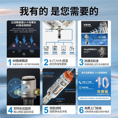 前置316不锈钢滤网,采用黄金比例过滤,有效去除水中大颗粒物,防止滤芯阻塞持续护航。滤瓶防爆设计,无惧低温重压的冲击。