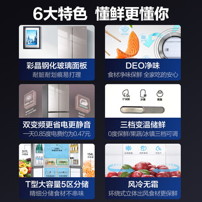 采用双变频技术,实现恒温保鲜的同时,不过度耗电,为您精打细算。外设智能触摸屏,无需开门即可调节内部温度。