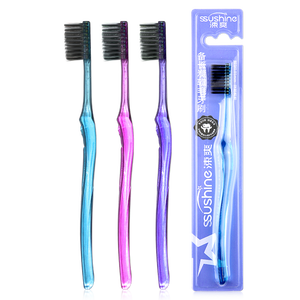 精选0.01mm炭纤丝,内含炭微粒,不仅能够深入清除食物残渣,还能吸附口腔异味。圆润的刷头,不易刺激口腔。