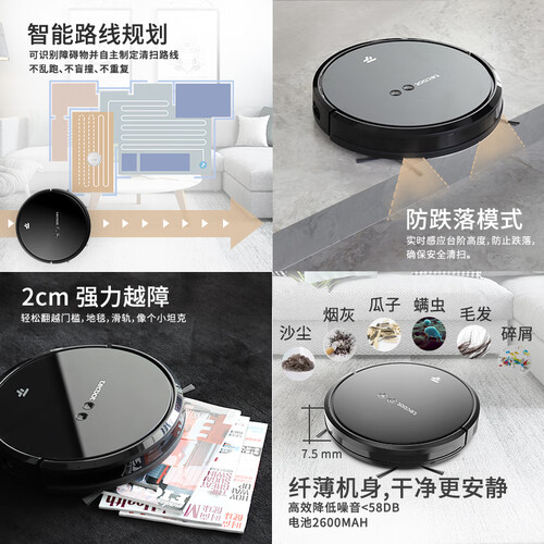 7.5cm平滑机身,20mm轻松越障,自由出入家具底部,不放过角落死角。双边聚拢,左右平衡设计,提高清扫效率。