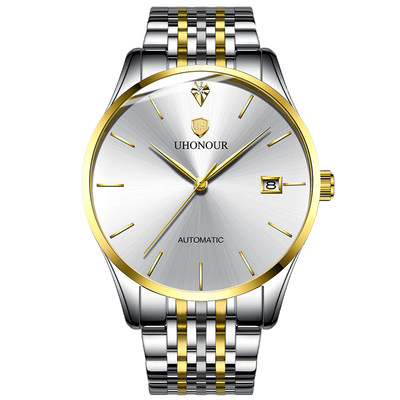 盘面镶嵌钻石点缀,与间金钢带相结合,展现出华丽轻奢的优雅风格,撞色条形时标,清晰明朗,日常读时直观又快捷。