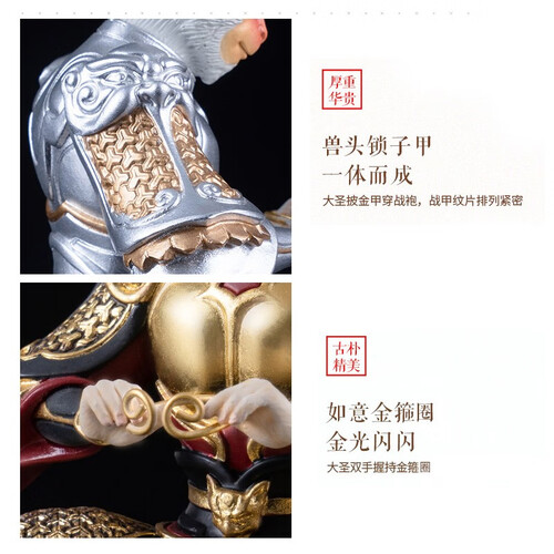 是来自设计师的作品,立体雕刻工艺更加精细搭配釉色彩喷,质感更加匀称。手里的金箍棒和紧箍咒,都也可以拆卸,随意组合。