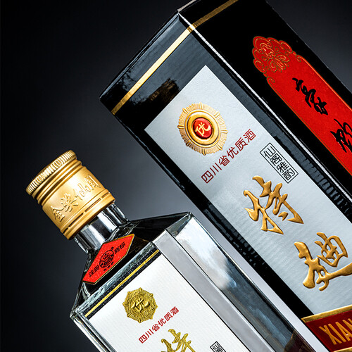 采用高粱、糯米等五种原粮精酿成这款浓香型白酒,它酒香浓郁,醇正柔和,绵甜爽净。包装将现代和复古元素相结合,细节很精致。