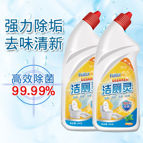 内含强力去污成分,可有效去除便器的病菌和水垢等污渍。温和中性配方,不易腐蚀管道和马桶釉面,可放心使用。