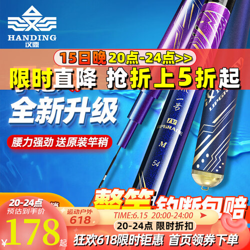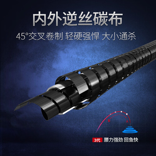 由小布号碳布打造,轻量竿体爱不释手;鱼竿材质密度大,带来舒适垂钓体验。强劲腰力回弹力好,解决塌腰烦恼,快速回鱼不担忧。