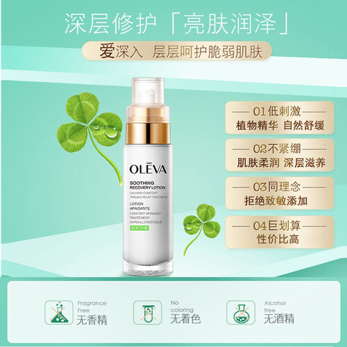 采用植物萃取,温和不刺激,适合各种人群使用。添加洋甘菊成分,帮助修护肌肤屏障,改善敏感状态,绽放健康光泽。