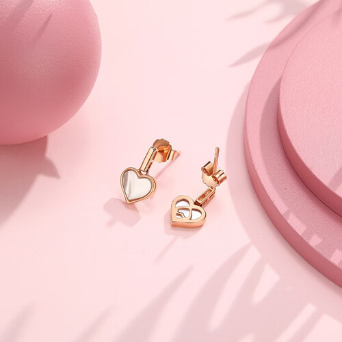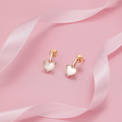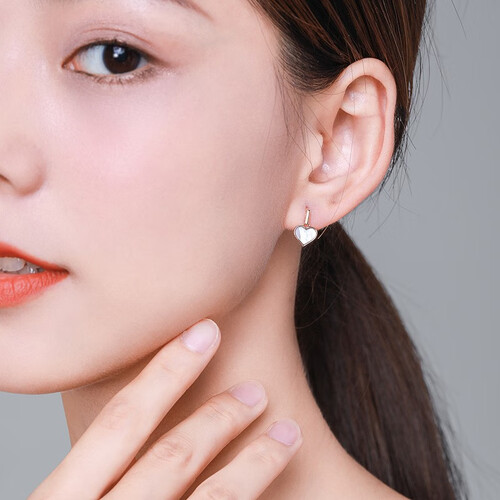 爱心造型,中间镶嵌品质母贝,能呈现出梦幻般的光泽,点缀在耳间增添青春活力感。搭配明媚K金,时尚百搭更彰显品位。