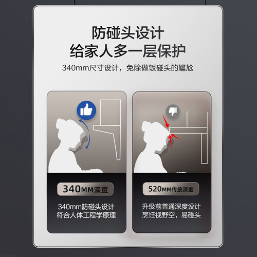 顶侧双吸油烟设计,可以及时吸走难闻油烟,避免油烟上脸。升级双风道设计,提高吸烟速度,让油烟没有机会可以逃走。