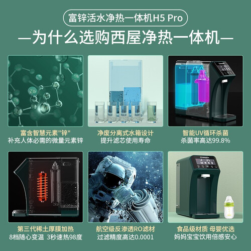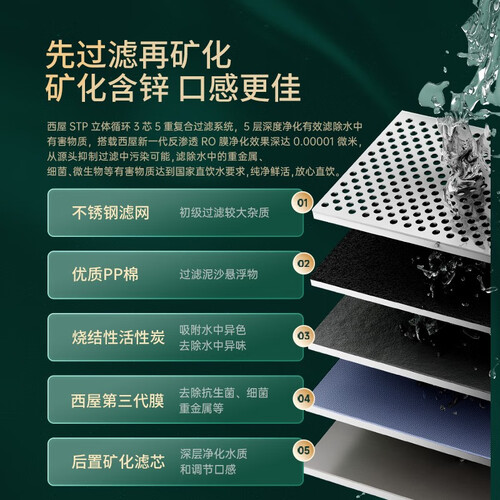 采用新一代的净水科技,能有效过滤99.8%的细菌等离子,滤出安心好水。采用立体循环复合过滤系统,可以从源头上抑制污染。