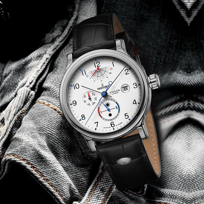 表盘的设计灵感来自电压表的外观,时髦独特。同时机械的表芯,非常高端。柔软细腻的牛皮表带,纹理清晰,佩戴舒适。