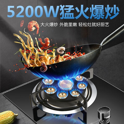 5.2kw九腔猛火,快速升温畅快爆炒。五段宽频调火,精细掌控火候。热电偶熄火保护,溢锅时不用慌张。