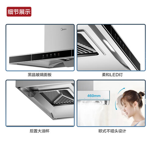 采用460mm的纵深设计,有效避免炒菜做饭时的碰头情况,让你尽情烹饪。可通过WiFi智能操控,随时随地掌握烟机状态。