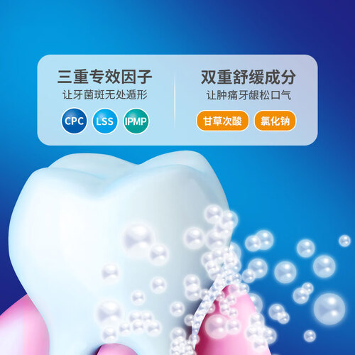 泡沫的质地细腻绵密,不含有研磨剂,口感更加轻柔舒适,牙周炎人群可用。添加三重专效因子,实力去除牙菌斑。