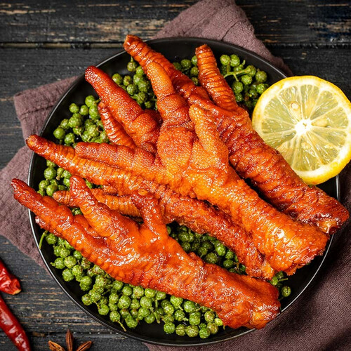 制作过程中,人工去除爪子指甲,干净卫生,食用更安心。历经12小时的炸卤,凤爪一秒就脱骨,更方便食用。