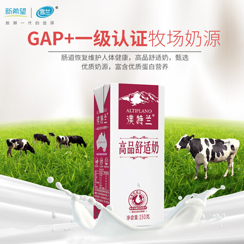 甄选荷斯坦奶牛产下的牛奶作为原料,不添加任何成分,口感醇正香浓。每100g牛奶含有3.3g的乳清蛋白,饮用营养健康。