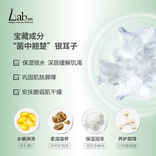 以二裂酵母滤液为基底,浓缩精华加速吸收,修复效果更好。添加银耳提取物,安抚肌肤,持久锁住水分。