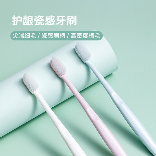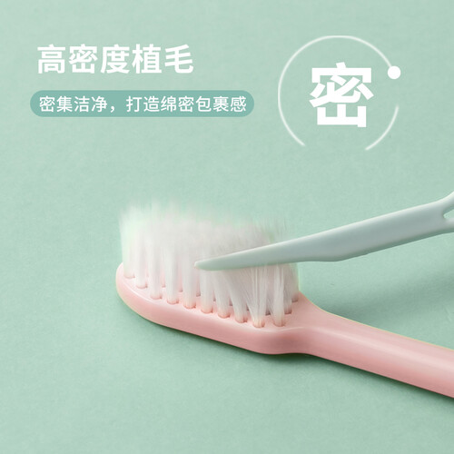 刷毛由PBT纤维丝构成,细至0.15mm,便于深入牙龈沟和牙缝,经过高密度植毛的小刷头可清洁口腔内的不同部位,避免遗漏。