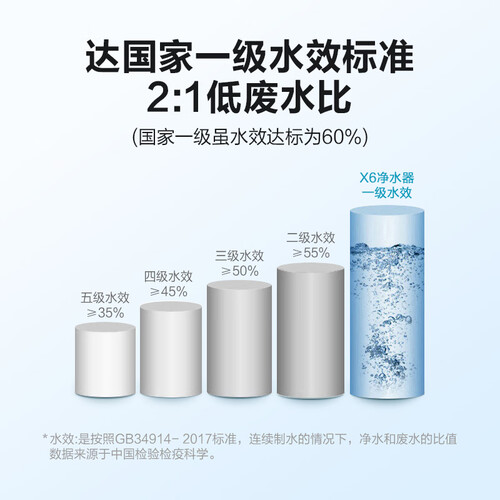无罐大流量出水,2:1净水,独特的脉冲节水技术,更少的减小费水。内置双PP棉滤芯,预先滤除大颗粒杂质,降低内部元件损耗。