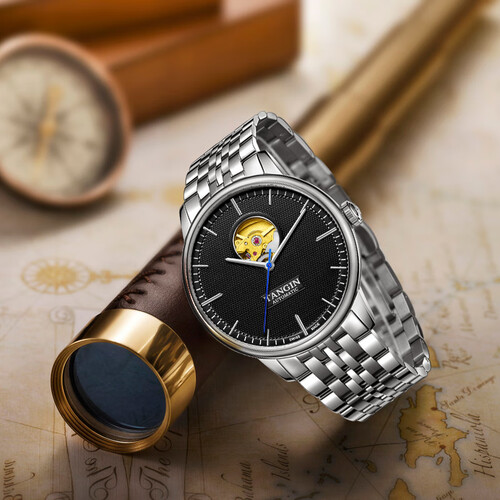 立体镂空底盖,精湛机芯一目了然。简约大气的表盘增加背透设计,提升整体设计感。精钢表带,质感出众。