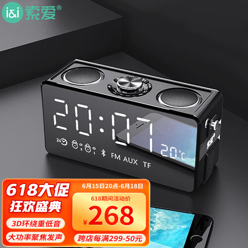 声音在鼓腔共振浑厚而圆润,发声自然清澈高音更有穿透力,音乐细节丰富充满爆炸力。镜面LED数码屏,还具备时钟显示功能。