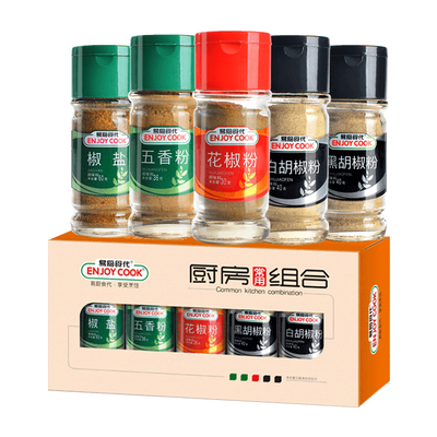 采用透明玻璃瓶装,食品级材质,光滑易清洗,安全看得见。5瓶套装组合,满足厨房多样烹饪需求。